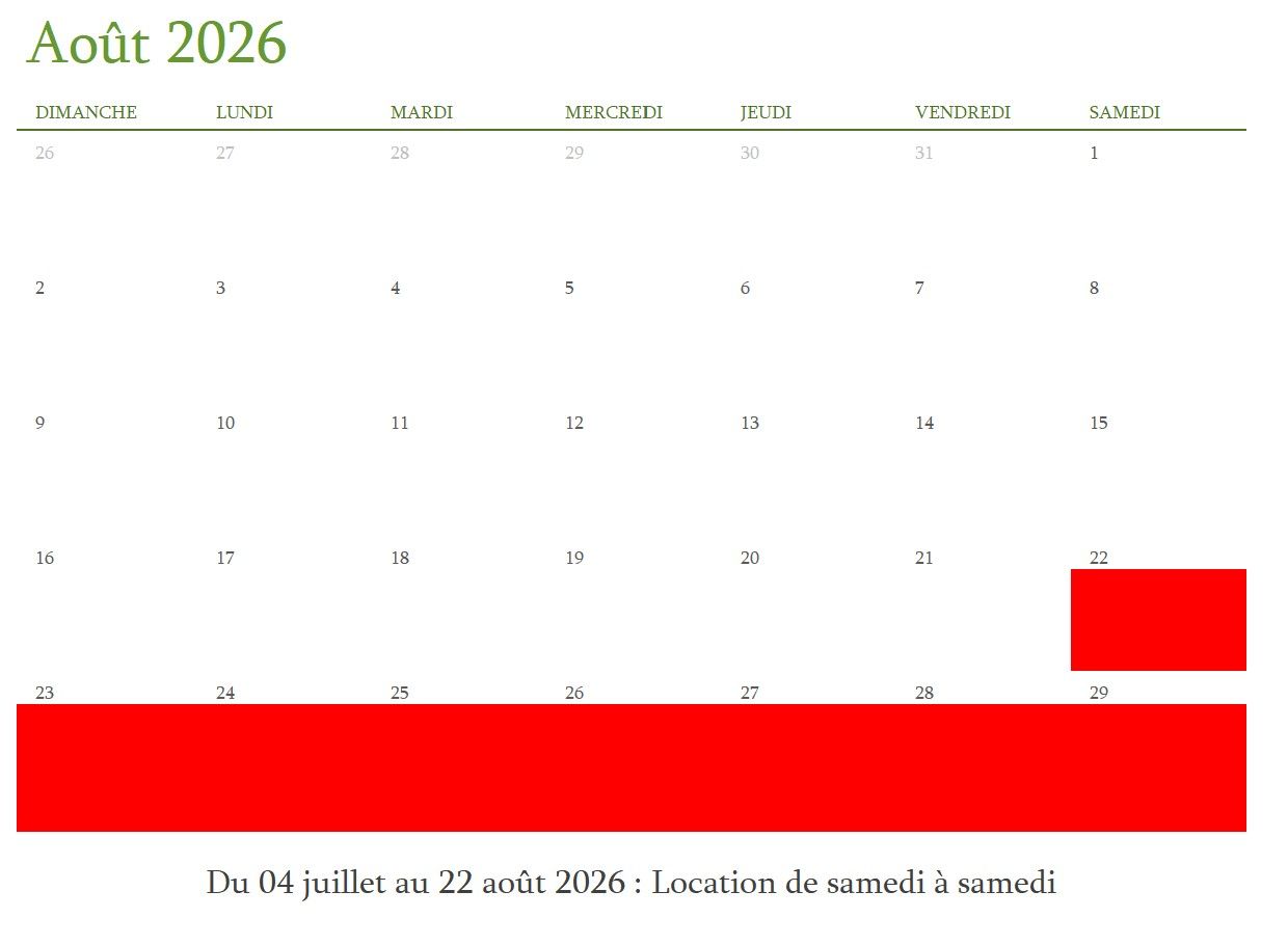 Zones en rouge aux tableaux mensuels = dates non disponibles